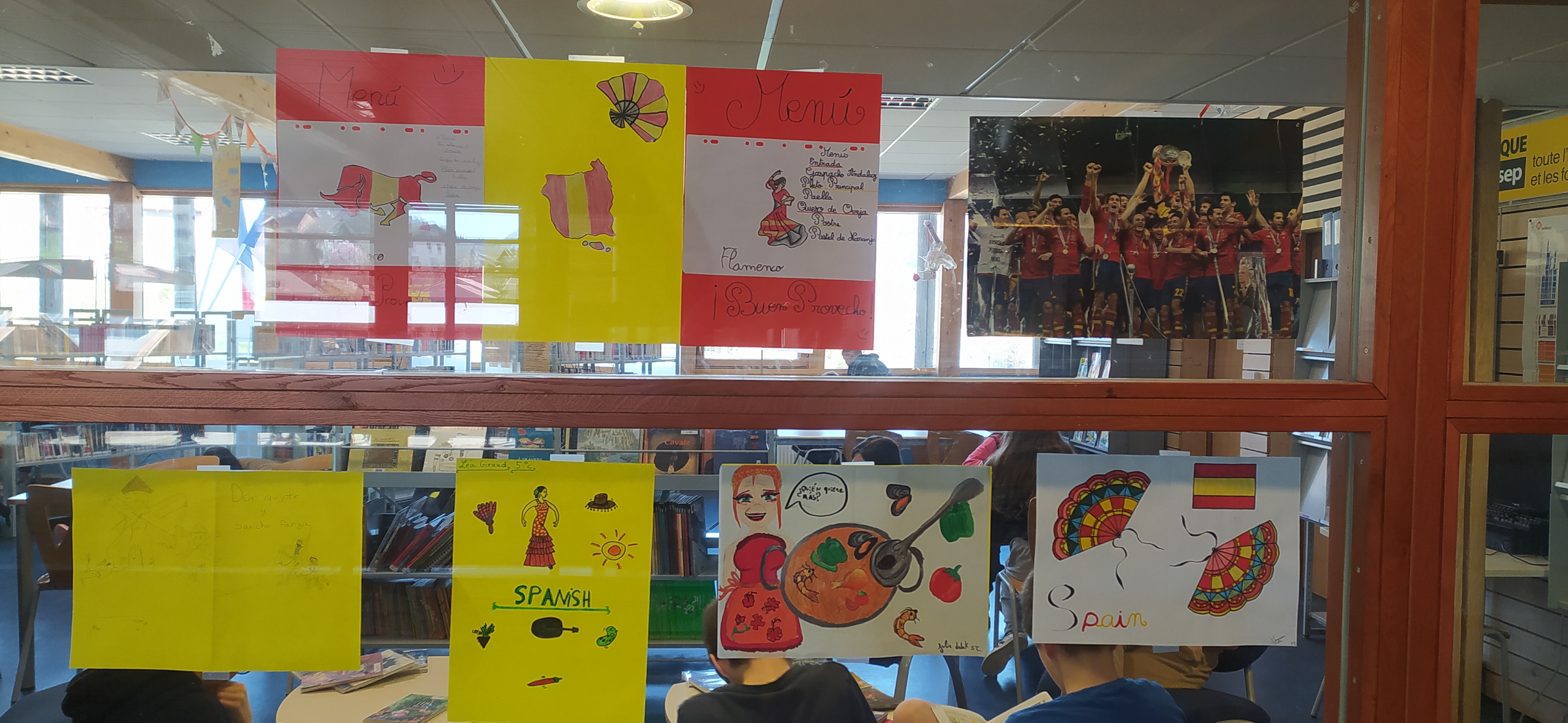 Une très belle semaine des Langues s'est déroulée au collège. Coup d'envoi donné le lundi pour la journée anglaise, le hall s'est paré du Union Jack et les élèves ont pu faire des visites virtuelles de Londres en scannant les QR codes affichés (liens des visites en bas de l'article) ainsi qu'en écoutant du bon rock anglais à la cantine, en dégustant un fish and chips, en découvrant des sports britanniques grâce aux affiches réalisées par les 3eme. Les sixièmes ont participé en décorant leur casier d'un drapeau (merci à eux!) Certains ont fait un clin d'œil à cette semaine particulière en portant un vêtement aux couleurs des drapeaux britannique, italien, allemand et espagnol! La cuisine a proposé un repas traditionnel pour chaque langue. Des salles ont été rebaptisées à l'occasion de la journée italienne. Les vitres du CDI ont célébré la journée espagnole. Hasard du calendrier, les 6èmes et deux classes de 5eme ont visionné un film en VOST dans le cadre de « Collège au cinéma ». Merci à tous pour votre participation!